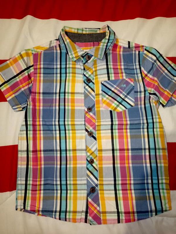Стильна яскрава сорочка. На 3-4 роки. Фірма F&F. У відмінному стані. Заміри надам по запиту. Усі питання пишіть сюди.