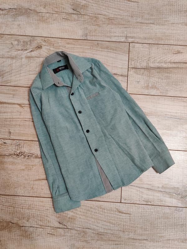 Очень красивая рубашка, приталенная, красиво сидит по фигуре, классного качества. Состояние отличное, одевали пару раз. На возраст примерно 4-5-6 лет, на бирке не указано, только размер 29. Ориентир на замеры длина 48, ширина 34, рукав 43,5.