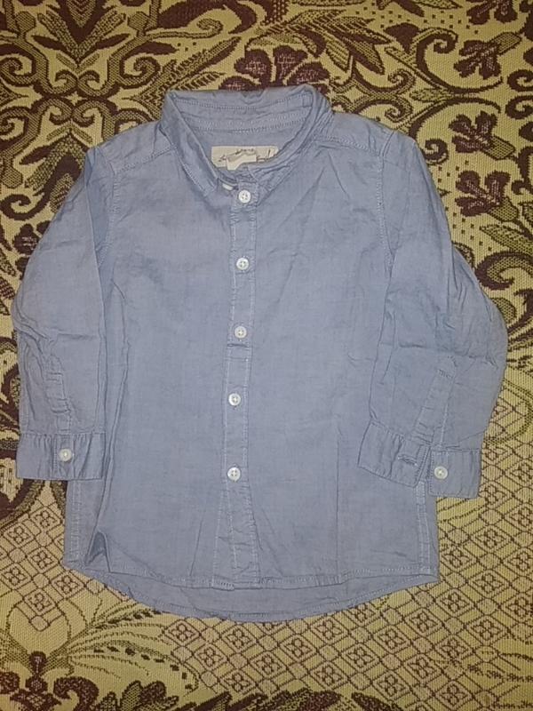 продам рубашечку на мальчика возраст 2-3года(по бирке12-18месяцев) в отличном состоянии, причина продажи короткие рукава((((замеры длина изделия от плеча-38,5(спинка длинее на 2см), ширина переда между проймами-31см, ширина плеча-6см, длина рукава от плеча-28,5см, ширина манжеты-8см