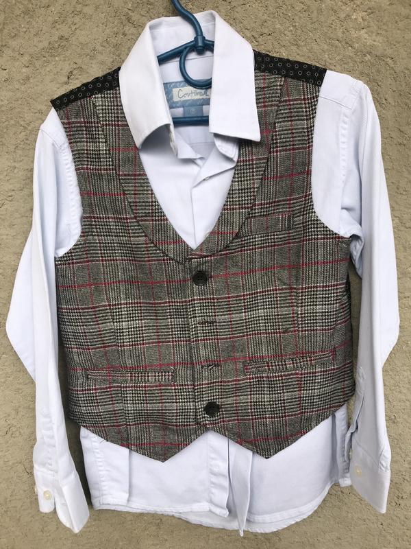 Рубашка с жилеткой в отличном состоянии, жилетку можно носить отдельно. Рубашка нежно голубой цвет