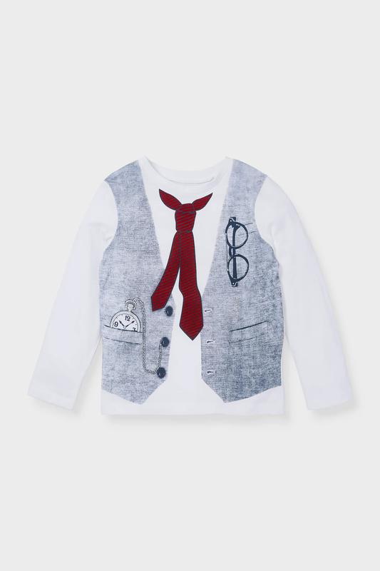 Реглан/лонгслив для мальчика/трикотаж C&A на 3 года на р.98 и на 4 года на р.104. Элегантно, но повседневно: рубашка с длинными рукавами с крутым принтом, состоящим из жилета, галстука, часов и очков. Состав. 100% хлопок.