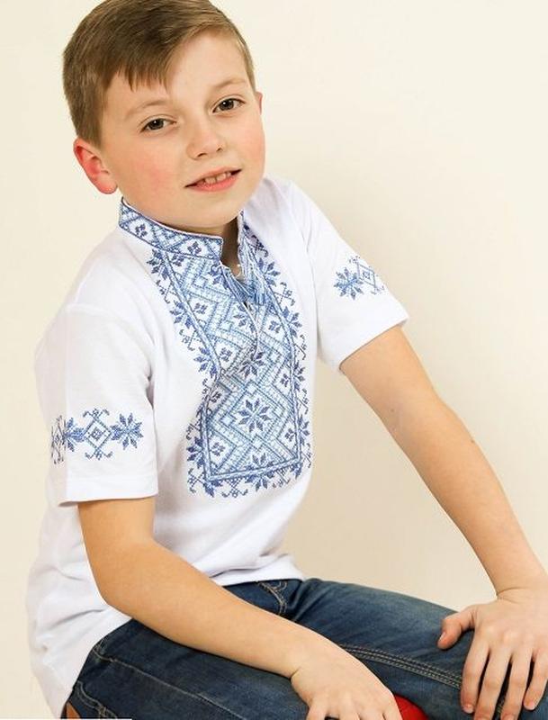 Вышитая футболка из трикотажа отличного качества Вышиванка удобно садится по телу, ткань тянется, при этом сохраняет форму после стирки Футболка-вышиванка с вышитым вортничком-стойкой, который придает ей нарядного вида, вышитой глубокой монишкой и вышитым рукавом Вышиванка выполнена на натуральной ткани "лакоста", красивой, структурной, которая отлично дышит и презентабельно выглядит. Вышивка качественная машинная. Нитки яркие, краска стойкая, при условии стирки до 30-40 градусов Цельсия. Рост: 92, 98, 104, 110, 116 - 575 грн, 122, 128, 134, 140, 146 - 595 грн.