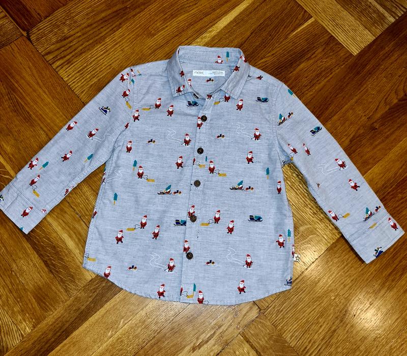 Хлопковая рубашка NEXT на 1,5-2 года. Длина 36см, рукав 29,5см , ширина 30см. Штантнишки новые длина 49см, резиночка талия 21см, манжет внизу 7,5см.