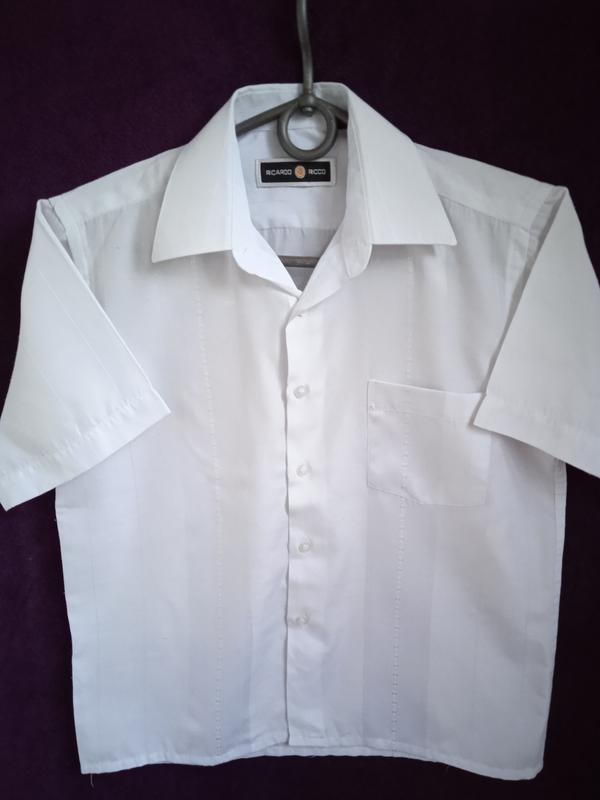 Продам рубашку для мальчика 6-8 лет белая с коротким рукавом, длина 56 см, ширина 44 см.