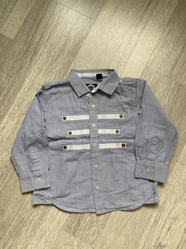 Рубашка Next голубая в мелкую полоску на рост 92 см,1-2 года Рукав от плеча 30,5 см Рукав с плечем 36,5 см Под подмышками 32 см Длинна по спине 37,5 см Без нюансов. К рубашка есть еще штаны фирмы cool club(смотрите другие объявоения)