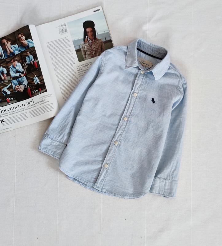 голуба сорочка від H&M для хлопчика 3/4 років на зріст 104 см, тканина котон, ПО грудей 32 см, довжина 44 см, рукав 35 см