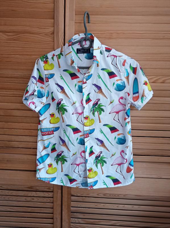 Яркая, классная, натуральная рубашка для мальчика 10-12 лет. Замеры ПОГ 42, плечи 36, длина 56/61