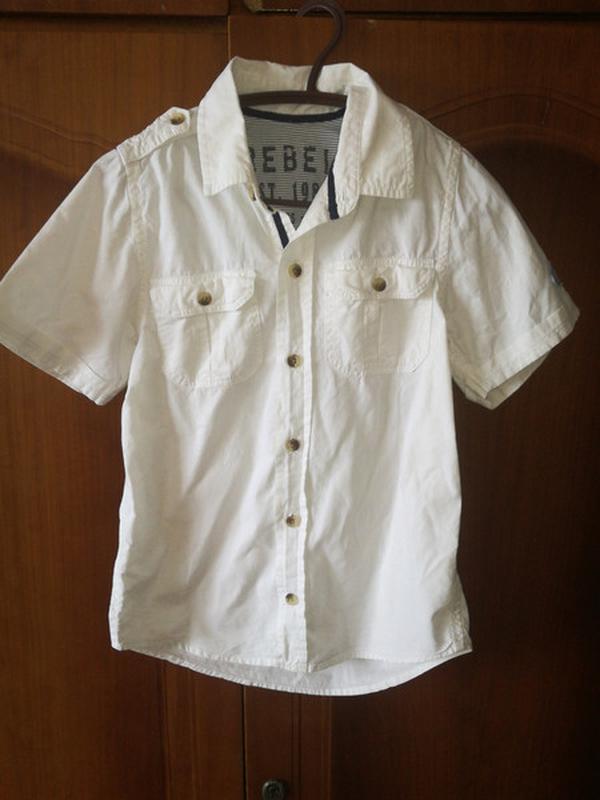 Сорочка стильна на хлопчика білого кольору в гарному стані. На ріст 128 см.