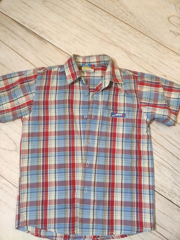 Рубашка для мальчика. Отличное состояние. На спинке принт. Замеры: рукав от плеча 15 см длина 50 см плечи 32.5 см