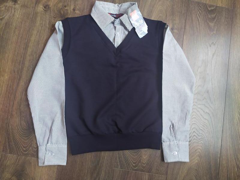 Рубашка-обманка CodeLINE Качество отличное ! Размер указан 140, ориентируйтесь на замеры Длина 51 см Ширина плеч 38 см Пог 40 см Длина ручка от плеча 54 см