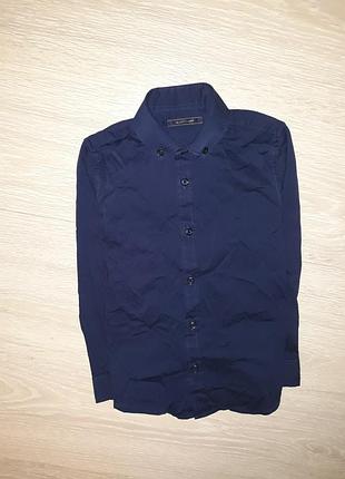 Фирменная рубашка мальчику на 5 лет. Состав 70% хлопок, 26% нейлон и 4% эластан. Состояние идеальное Замеры: длина по спинке от плеча 45,5 см, ширина между подмышками 35,5 см, плечи 27 см, рукав от плеча 38 см, по внутреннему шву 27,5 см