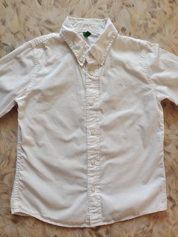 Фирменная рубашка для мальчика в идеальном состоянии, следов носки нет. По размеру ориентируйтесь на реальные замеры.