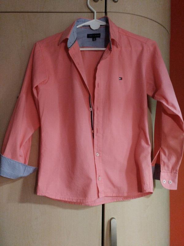 Рубашка Tommy Hilfiger оригинал рост 140-146 100% хлопок яркий приятный цвет качество идеальное рукав с подворотом Замеры: длина по спинке 60 длина рукава 49 плечо 12 ширина плеч 39 ПОГ 45 Состояние новой вещи