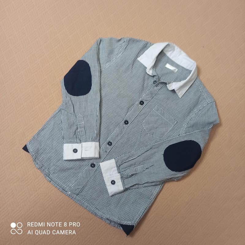 Детская рубашка в отличном состоянии. На локтях нашивочки,манжеты и воротник белые. Рост 122 см,на 6-7 лет.Длина 47 см, ширина по пройме 34 см, длина рукава от плеча 40 см.