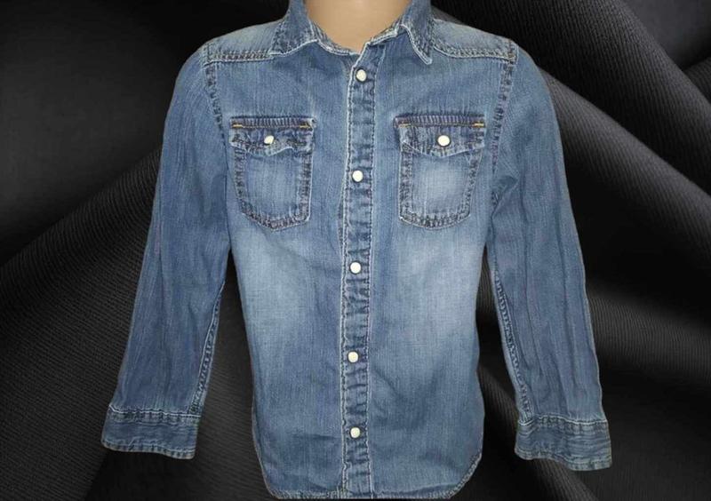 Джинсова сорочка на хлопчика 5-6 років. В ідеальному стані! Ширина плечей-27см, ширина під мишками-34см, довжина-43см, довжина рукава-39см.