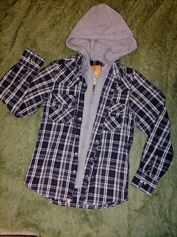 Рубашка с капюшоном в клетку на заклепках