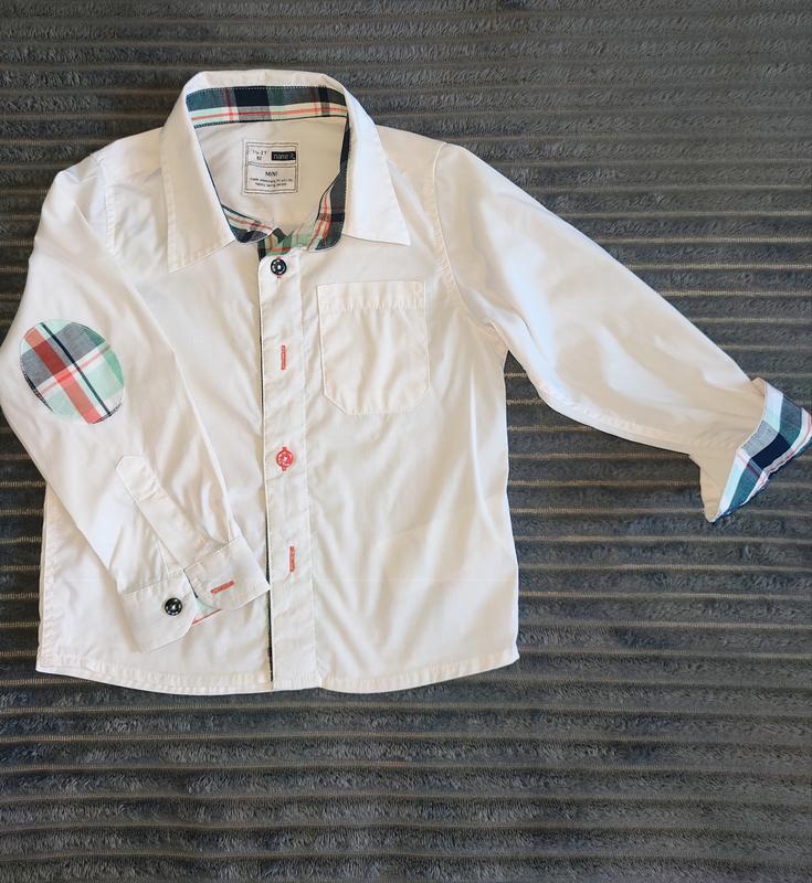 Стильная рубашка на мальчика, в идеальном состоянии. Без пятен и дыр. По бирке на 1-2 года, смотрите замеры. Замеры: ПОГ - 33 см; длинна - 39 см; длинна рукава - 34 см; плечё - 7 см.