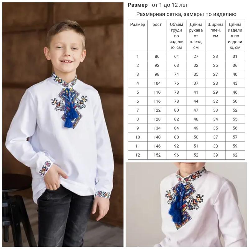 Розміри від 1 до 12 років Тканина - домоткане полотно Склад тканини - 48% поліестер, 52% бавовна .