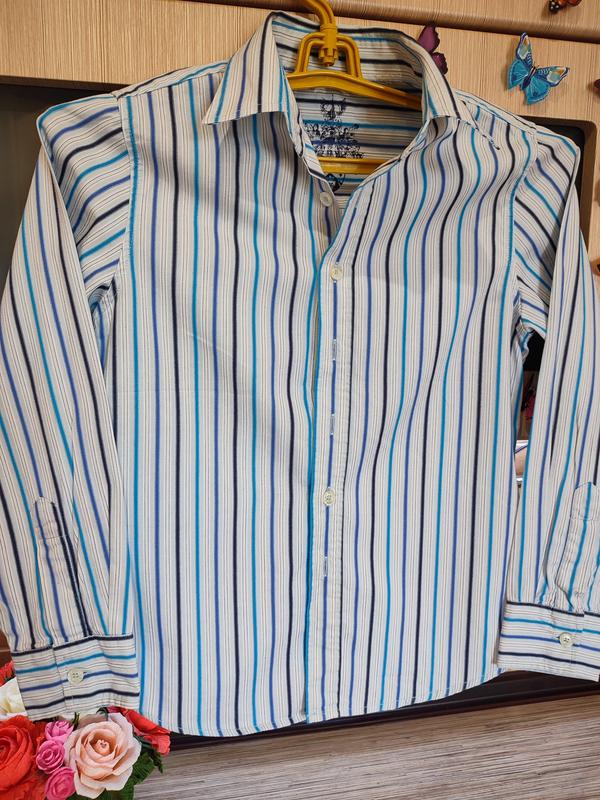 Рубашка на хлопчика, дуже гарна та якісна, стан нової. На зріст 134-142 довжина 55 плечі33 рукав 50 ширина 41