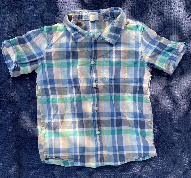 Рубашка в клетку фирмы H&M на 2-3 года. Замеры: длина по спинке - 41 см.