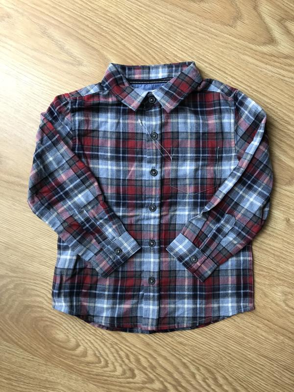 Рубашка для мальчика 3-4 года 104 см рост от фирмы M&Co, хлопок. Замеры: длина от плеча 43 см, ширина по груди 33 см, длина рукава от плеча 36 см