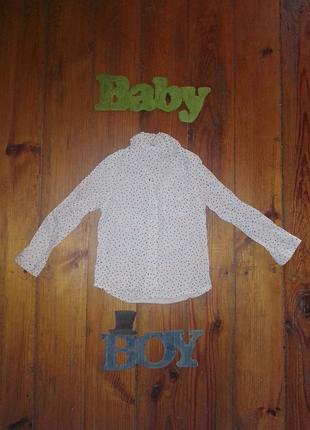 Очень классная белая рубашка на пуговках в мелкую черную звёздочку, на груди кармашки, манжеты на пуговках. На последнем фото попыталась показать нюанс, но видно плохо, там немного пожелтел воротничок по изгибу. Рост по бирке 98-104 см. Ткань не тянется ПОГ 32 см. ПОТ 31 см. РУКАВ 37 см. ДЛИНА 39 см. ВіДАр - яскравий шопінг доступний кожному 🛍️! Рада бачити Вас у себе✋ - МІНІМАЛЬНА СУМА ЗАМОВЛЕННЯ 80 ГРИВЕНЬ! - Відправка протягом 1-5 днів 🚀 - Перед оформленням замовлення уточнюйте будь ласка наявність 😺 - Для постійних клієнтів є приємні бонуси 😻 ❗Перед покупкою уважно прочитайте опис товару та магазину, якщо залишилися питання пишіть, не соромтеся😘 Дякую за Ваш вибір, все буде Україна 🙏🇺🇦