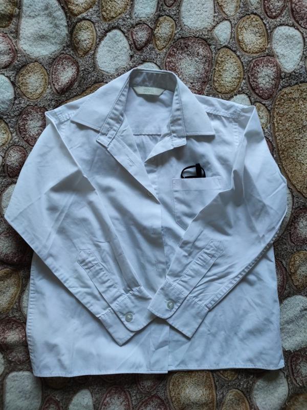 Сорочка біла. Орієнтовно 6/7 років. 122см склад: 65% поліестер, 35% котон Виробник: Made in Bangladesh