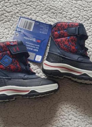 Черевики Lupilu 22р-14см Водонепроникні, міцні термоботинки відомого німецького бренду Lupilu. Не важкі, легко одягаються, добре підходять на мокру погоду. Утеплювач з штучного хутра. На підошві устілка з алюмінієвим прошарком для кращого збереження тепла. Присутні світловідбиваючі деталі для кращої видимості в темний час доби. Товста підошва з рельєфним протектором запобігає ковзанню. Якісні. Сезон осінь, еврозима, весна.