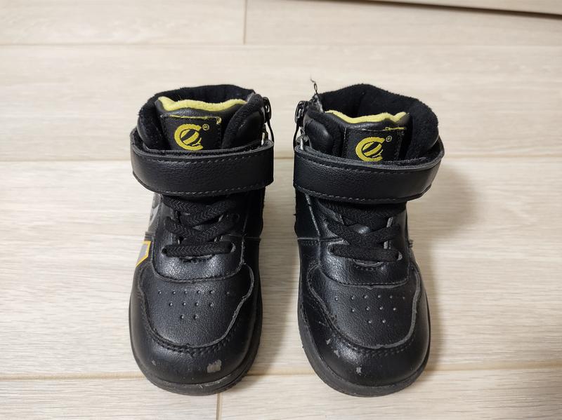 Теплі, легкі, зручні черевики. розмір 23 - 15см по устілці. Трохи обдерті спереду та з внутрішніх боків трохи відклеїлись від підошви, але ноги в нас при цьому нюансі не промокали.