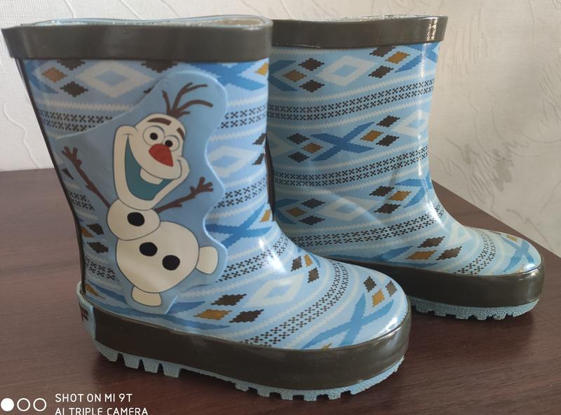 Резиновые сапожки с Олафом от англ.фирмы Marks & Spencer. Размер UK 6, eur 23( cm-13.5см), длина стельки -15.2см. Подошва не тонкая, протекторная. Состояние отличное, ребенок носил мало! На сапожках местами присутствует чуть заметная желтизна, такими были изначально.