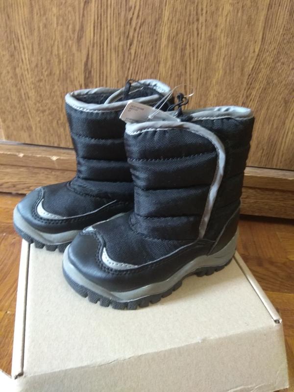 Абсолютно новые, бирочка оборвана, но есть, зимние термики известного бренда F&F. Очень крутое качество. Размер 22, стелька не вынимается, сантиметром внутри где-то 14-14,3 см. Под липучками ещё защита тканевая, чтобы не задувало или не попадал снежок. Защитный носок от сбивания.