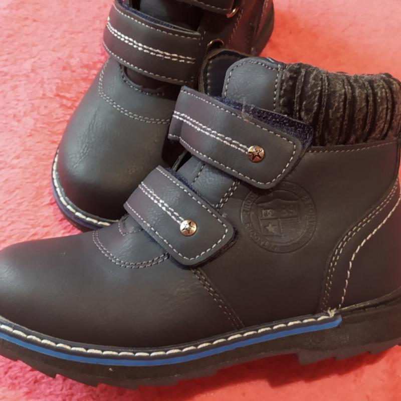 Нові теплі черевики на хлопчика. Високий підйом. Фіксація повноти ніжки на дві липучки. Зручна застібка збоку. Залишився останній розмір. Устілка 18 см. без торгу