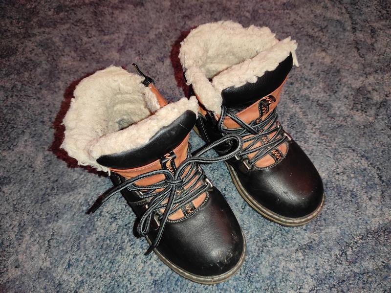 Ботинки зимние мальчику ,р 30 ,добротные ,прошиты ,внутри овчина ,шнуровка и молния , состояние очень хорошее,один носочек поцарапан ,в реальности в глаза не бросается