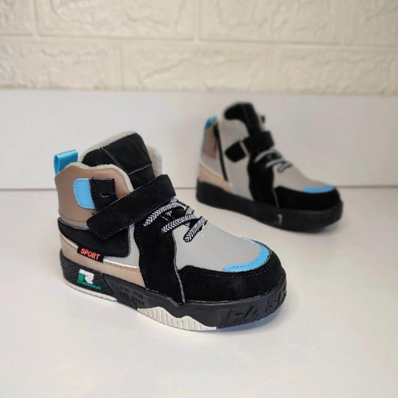 Не маркі 👍 Верх виконаний з комбінації екошкіри та нубуку. Всередині утеплені флісом. Устілка теж утеплена. П'яточка добре тримає ніжку. Присутній боковий замочок та липучка, тому хайтопи підійдуть на будь-яку ніжку 👌 Шнурочки-резиночки. Замір всередині,устілка не виймається. Розміри: 27 - 17,5см 28 - 18см 29 - 18,8см 30 - 19,5см 31 - 20,1см ЮМ