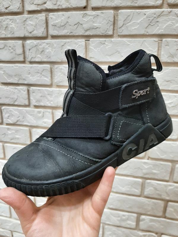 Натуральная кожа, удобные. На ноге выглядят лучше чем на фото) внутри утеплитель, показала на последнем фото. Без стелек, нужно будет докупить. Длина по стельке 21см. Отдаю за символическую цену