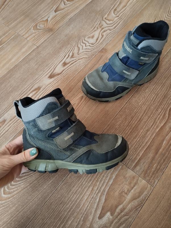 Термооботинки в хорошем состоянии, но есть дефект, на левом ботиночке взбиты передок. Материал натуральный замш +мембрана. Стелька 21, 5
