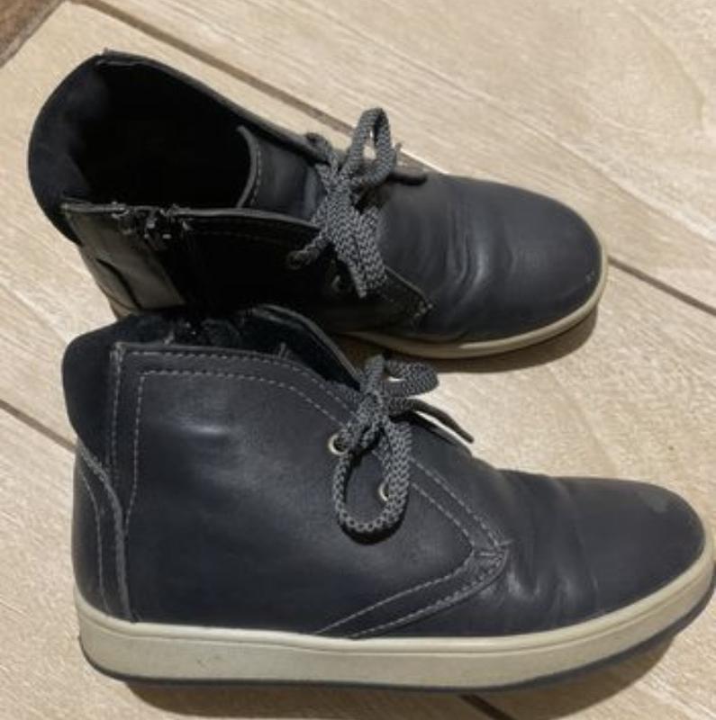 Продам кожаные ботинки зимние на цегейки. Стан видно на фото . Надевали раз 10. Но в школе дети любят топтать ноги другим и результат на фото, но все это выправляется, и еще один из дефектов из зада на пятке почему-то ловнул задник. А так вообще состояние очень хорошее. Сказать что идеал не могу так как есть эти дефекты! Купували за 1200 . Відаю за 500 грн Стелька 21см