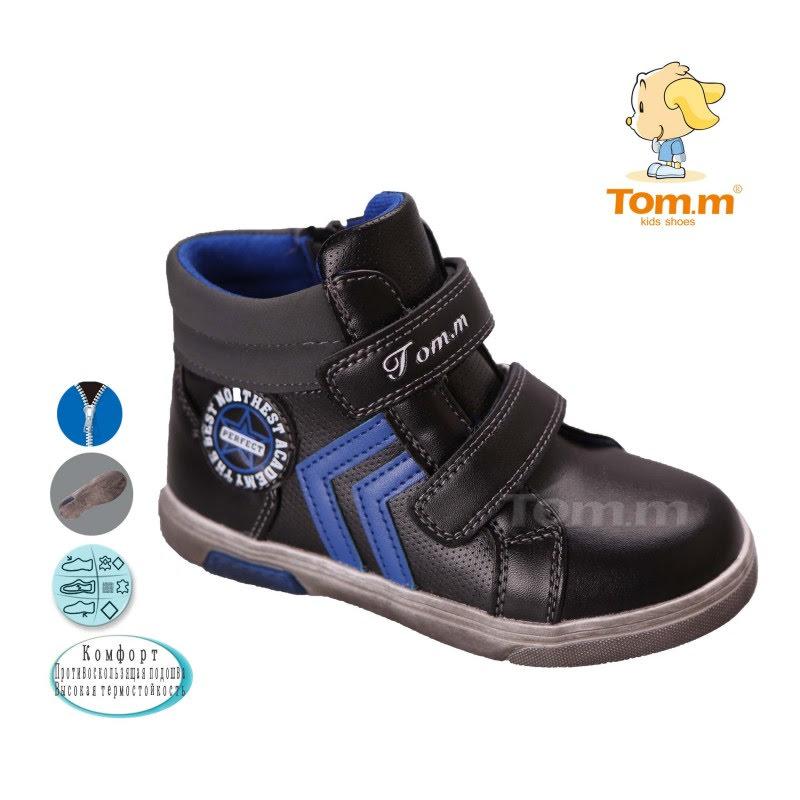 Черевики Том.М 3037A чорно-сині Верх – шкіра комбінована Усередині - Текстиль/шкіряна устілка, є супінатор. Світла частина підошви сильно затемнена, як напиленням. 27р. по устілці 16 см 29р. по устілці 17,5 см 30р. по устілці 18,5см