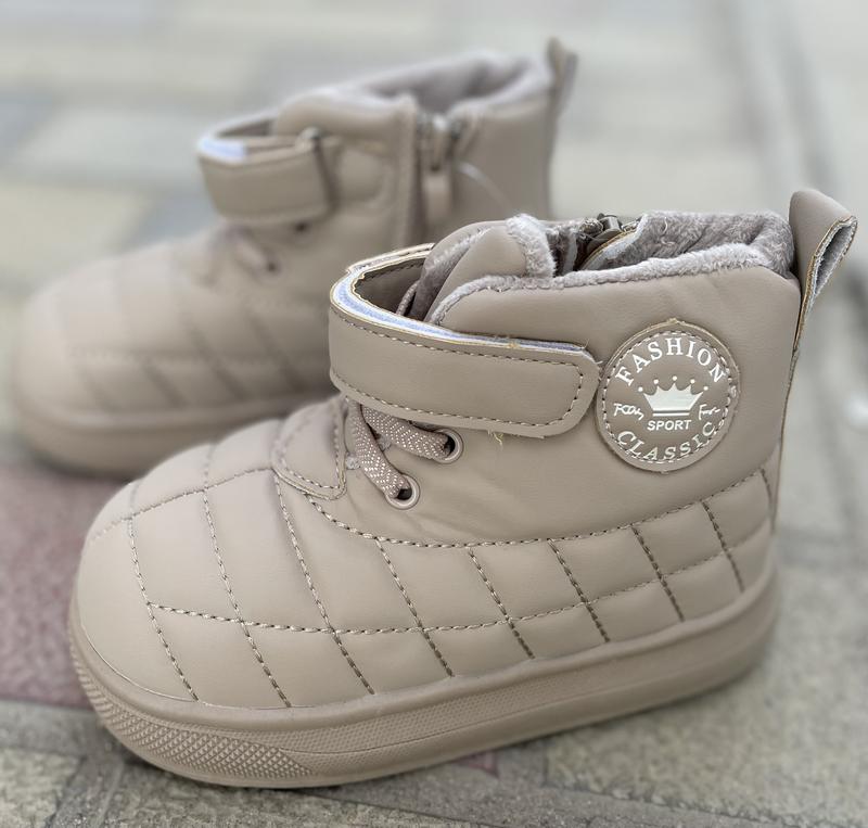 Стильная новинка для малышей Цвет беж Верх прошита мягкая экокожа Есть шнурок резинка, липучка и молния Утепленные овчиной 28-16,5 см 29-17 см 30-18 см 31-18,5 см 32-19 см 33-19,5 см стелька