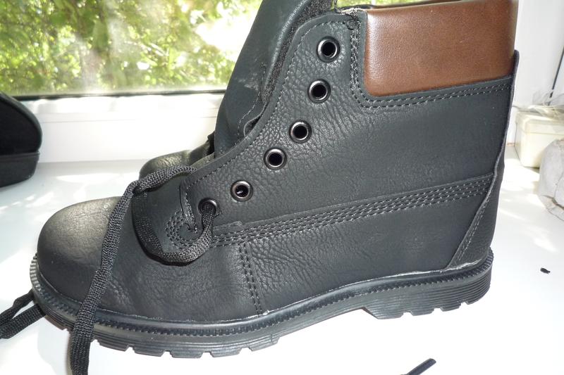 Ботинки в стиле Timberland 36р, кожзам, цвет черный, резиновая подошва (износостойкая, не пенка), стелька на фото, есть утеплитель вокруг пятки и подъема коротенький мех искусственный, но в носочной части его нет. Пересылаю