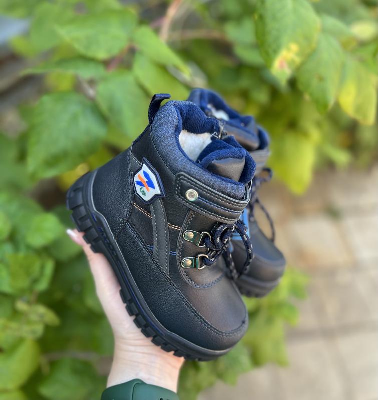 В наличии Зимние ботиночки с густым мехом Верх эко кожа Фиксация с помощью шнуровки и липучки, сбоку есть молния Цвет темно-синий, не тяжелые 27-17,5 см