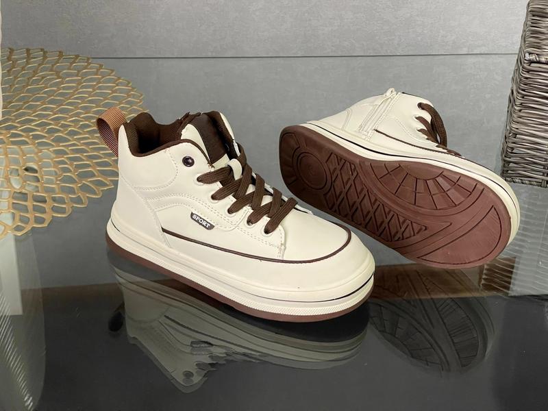 Стильные хайтопы из новой коллекции моделька универсальная Верх якісна еко-шкіра Внутри текстиль Стелька кожаная, есть супинатор Фиксация шнуровкой Сбоку есть молния Легкие и удобные 34 размер 21,9 см
