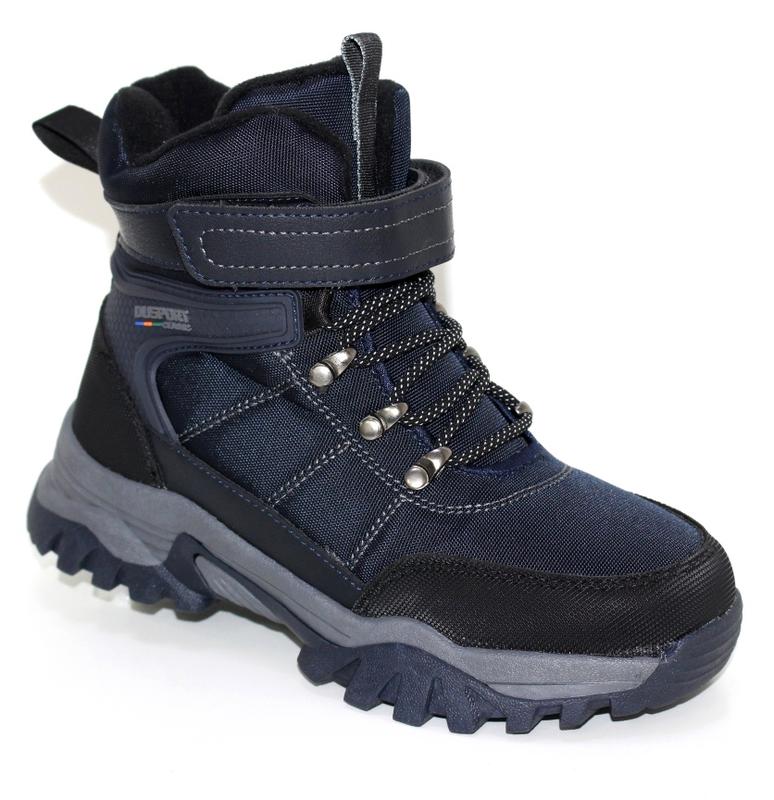 Подростковые зимние синие ботинки с эко-хутром на мальчика на шнуровке с липучкой, светяща...