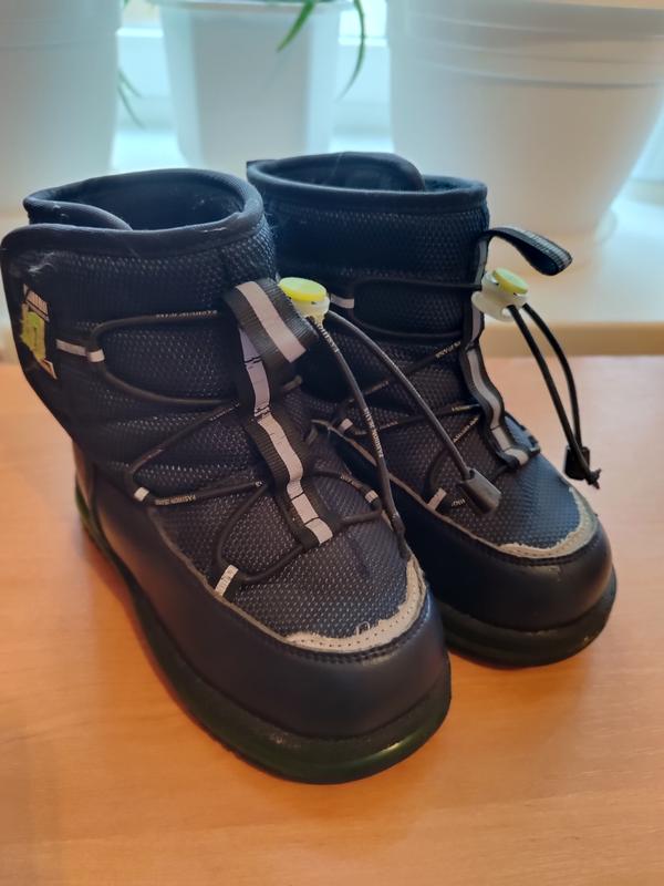 Теплые и очень удобные дутики Tom.m,одились одну зиму, ноги были теплые и сухие, размер 28. Состояние очень хорошее. Из дефектов только есть маленькие трещинки с середины обуви на коже, не заметны и шнурки необходимо зафиксировать.