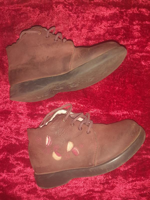 Мягенькие детские ботиночки из натуральной замши и кожи,коричневого цвета. Все дефекты видны на фото.