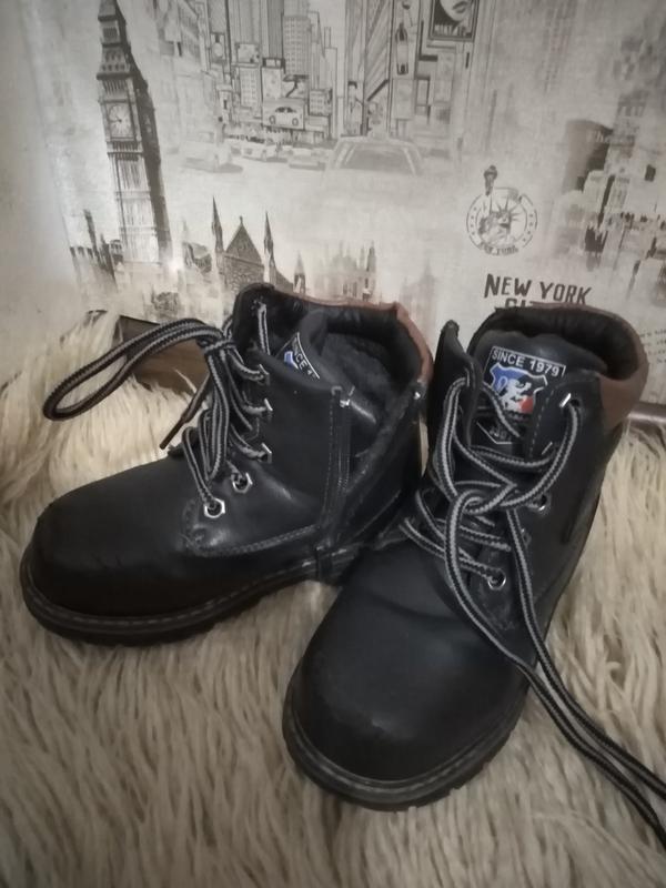 Ботинки на мальчика синие. Теплые. Стан на фото. Эко кожа