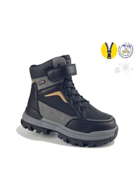 Ботинки зимние детские для мальчика серые с черным Jong Golf. Зимние ботинки на меху для мальчика. Удобная модель на шнурках и липучке. Верх эко-кожа + эко-нубук. Застежка: шнурки/липучка + боковая молния. Подкладка овчина. Высота ботинка от подошвы 13 см. Подошва ПВХ. высота подошвы 2-3 см. Замеры по стельке: 38р - 26 см