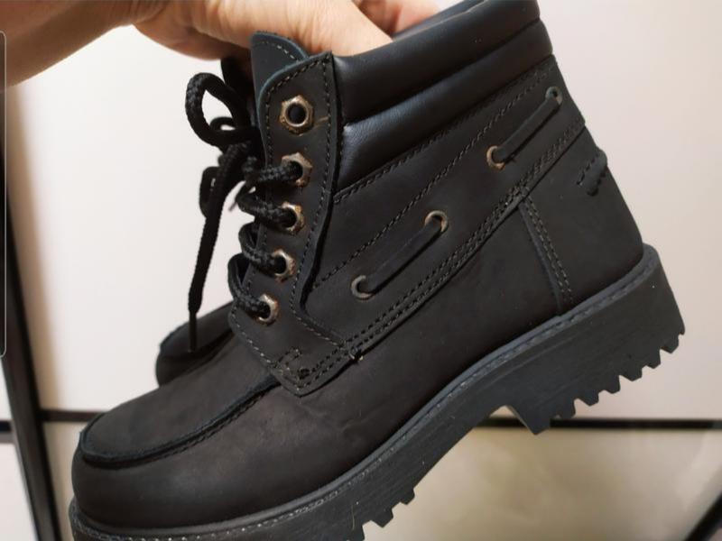 Шикарные ботинки черного цвета в идеальном состоянии. Несколько раз обувались,не подешел размер. Как новые. Верх-кожа, шнуровка на любой подъем, внутри утеплённый текстиль, высокий протектор. Размер указан 34, стелька 22см. Доставка: новая почта, укрпочта. Укрпочтой можно по безопасной оплате.