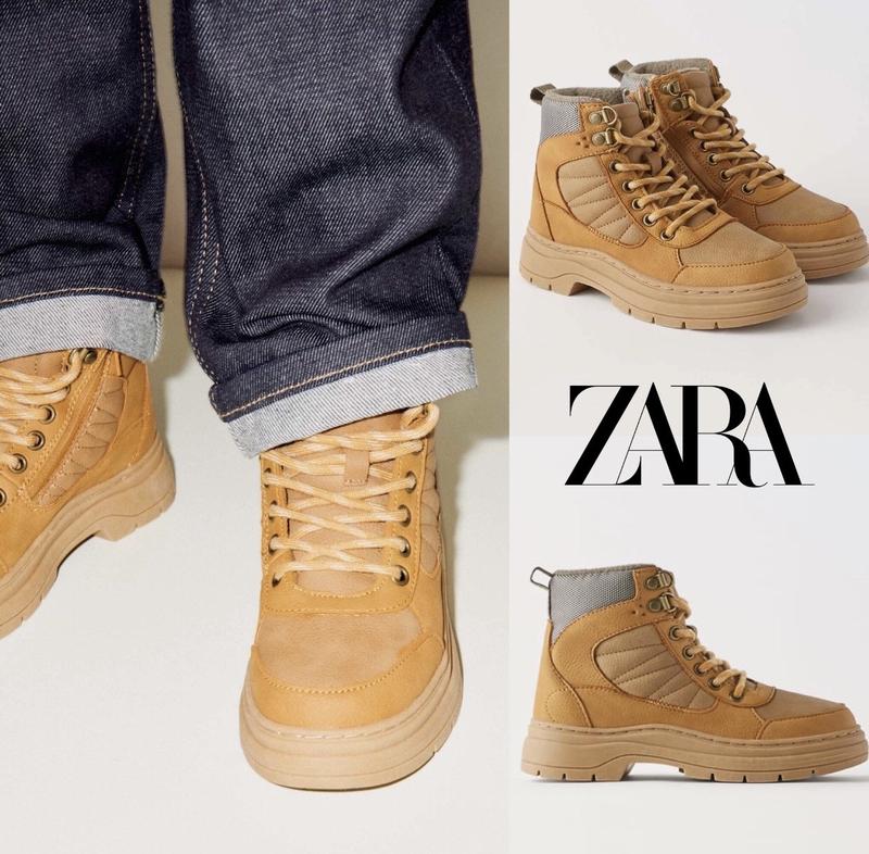 Черевики Zara, нові, з бірками, викуплені з оф.магазині. Зроблені із комбінованих матеріалів. Регульована шнурівка та бічна застібка на блискавку. Язичок ззаду для зручності вдягання. Стьобаний верх контрастного кольору. Легка гумова підошва. ТЕХНІЧНА Устілка STARFIT® FOAM: Комфорт, амортизація та довговічність. В наявності: 35р, 36р.
