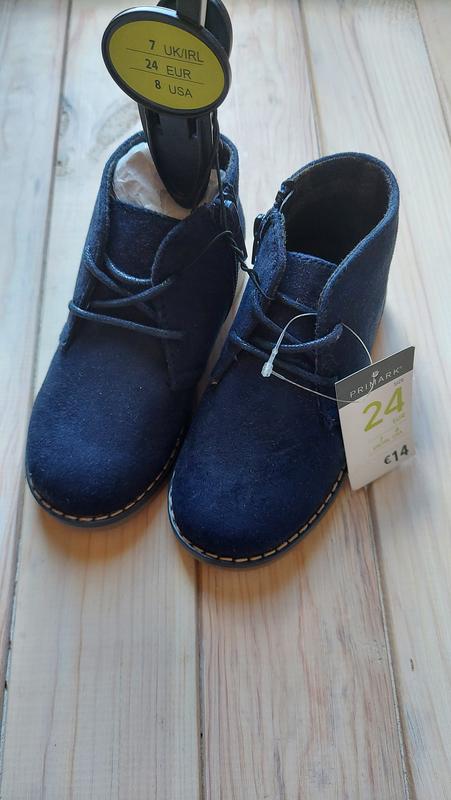 Ботинки синего цвета из искусственного замша Декоративная шнуровка, застежка-молния. Подошва из полиуретана, верх-текстильный замш размер в наличии 24 длина по подошве 17,5 см